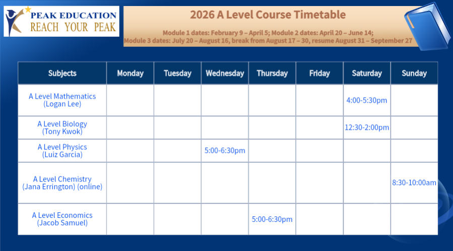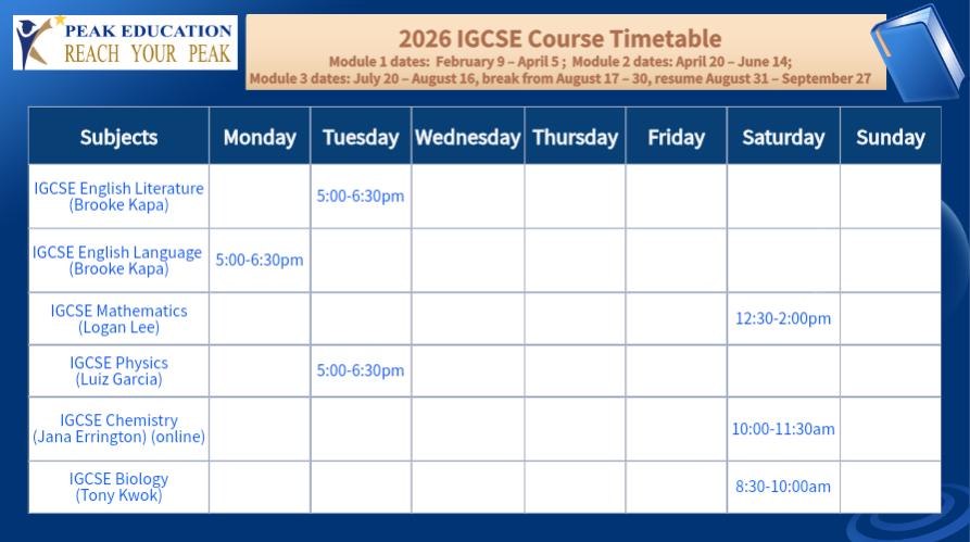 IGCSE, AS & A Level 全年常规课程表